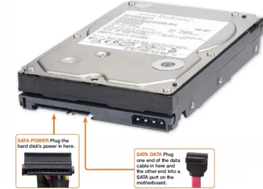 Next, you will plug in the 15-pin side of the SATA Power Cable onto both of your hard drives. You will also plug in one of the sides of each SATA Cable into each hard drive as shown below for both connectors.